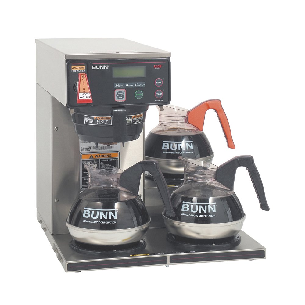 BUNN Axiom DV-3, Dual Voltage Automatic Commercial 12-Cup Coffee Maker, 3 Lower Warmers, 38700.0009,Grey, 7.5 Gallons—